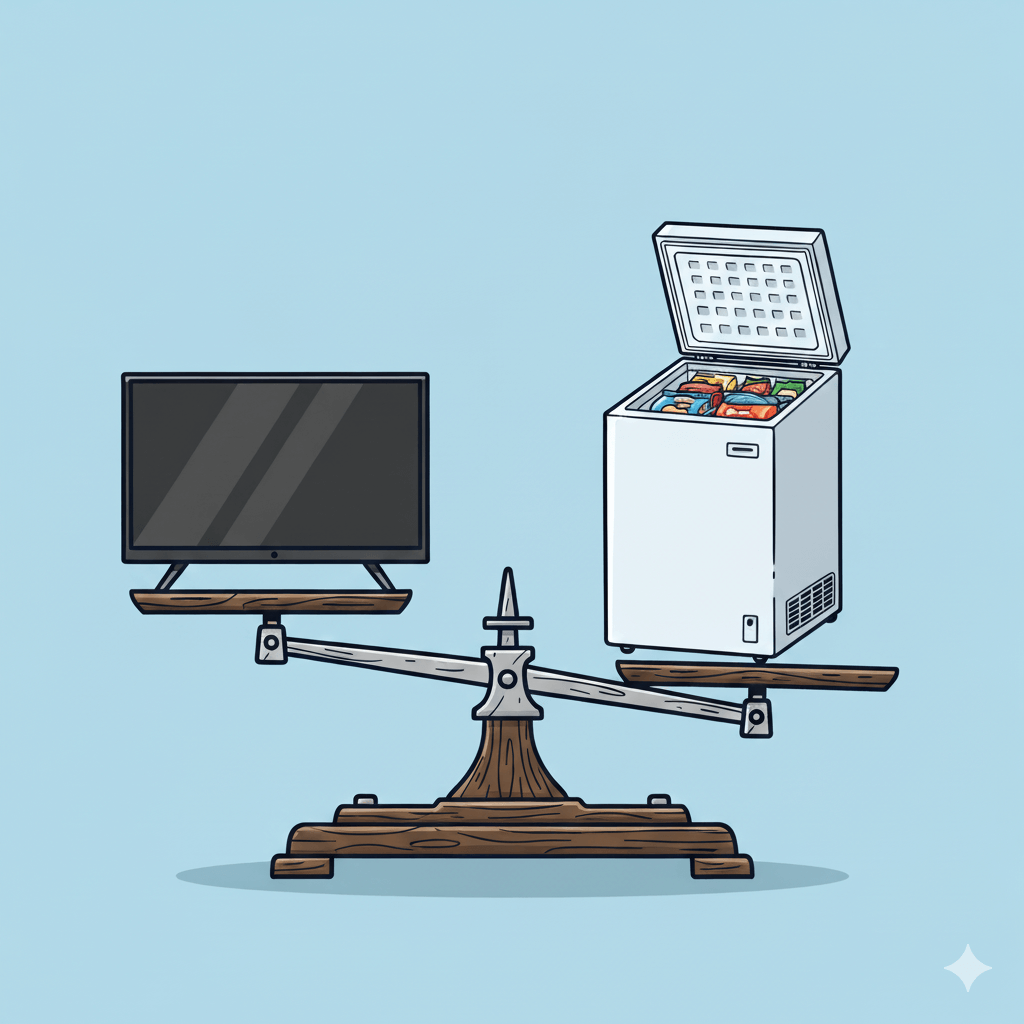 For this case study, we are going to briefly look at a hypothetical person who is buying gadgets for their home during a period of time in their life, where they have money for just one gadget, and they have to decide between a television and a deep freezer. So the big question here is, if the hypothetical person were applying critical reasoning, financial planning, long-term thinking, and cost-benefit analysis to this purchase, which one should they buy?